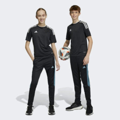 Essential training gear from adidas. Before you hit the pitch for that chilly winter session, layer up in these juniors' Tiro 23 Club football pants. Their slim, streamlined fit and moisture-absorbing AEROREADY will keep you flying through sprints and rondos. Once you reach perfect temperature, ankle zips make pulling them off over your boots a breeze.