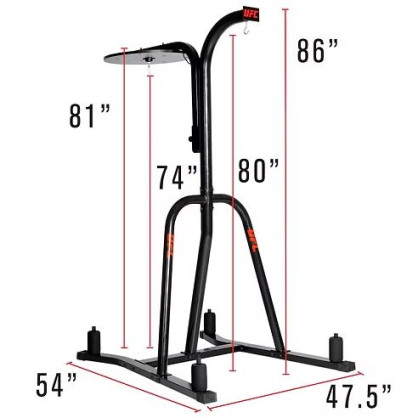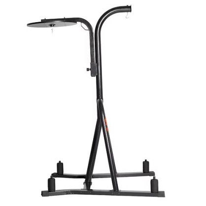 -Dual-station design: combines a heavy bag stand with a height-adjustable speedball platform